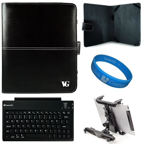 The Detailed Description of Black Executive Leather Portfolio Carrying Case Cover for Apple iPad 3 (3rd Generation iPad) 9.7 inch Tablet (16GB, 32GB, 64GB) + Universal Headrest Tablet Mount + SumacLife Bluetooth Wireless Keyboard with Micro USB Charging Cable + SumacLife TM Wisdom Courage WristbandFeatures