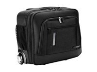 Enhance your on-the-go productivity and laptop protection with the Targus 15.6 inch Revolution Compact Roller. Patented SafePort Air Cushion System delivers industry-leading protection against drop damage, while abundant intelligently-designed features boost efficiency and ease of use. Keep devices secure and handy with the plush-lined tablet pocket (fits up to 10" devices), transparent mobile phone compartment for convent viewing of call/message activity and spacious storage area for power adapters and other accessories. Efficient organization is at hand with easy-to-locate key fob and individual pockets for USB flash drive, SD card, business cards and pens. A removable accessory pouch and side bottle pocket deliver further convenience while interior side gussets keep valuables from falling out. Transport it all with ease thanks to the stable telescoping trolley, quiet, smooth-rolling in-line skate wheels, well-padded top handle, bottom grab handle and convenient luggage strap. Compatible with up to 15.6" laptops thanks to the Targus Fit-Flip system.