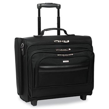 Versatile dual-access for removal of computer from zippered side door or main compartment. Padded CheckFast sleeve with Velcro closure fits notebooks with up to 15.6" screens, includes handles for easy removal. Front zippered compartment features an accordion fan file. Zip-down front organizer contains phone pocket, pen loops, business card holders and accessory pocket. Overnighter section features elastic straps with speed buckles to secure clothing and full-length accessory pocket. Locking telescoping handle system and in-line skate wheels. For Device Type: Notebook; Material(s): Ballistic Poly; Carrying Method: Telescopic Handle; Color(s): Black.