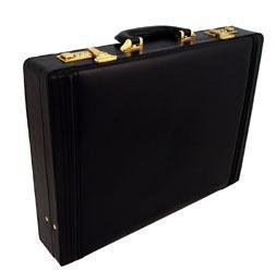 SUMMIT 8703B BLACK - LEATHER BRIEFCASE. SUMMIT 8703B BLACK - LEATHER BRIEFCASE - ~3" deep leather attache - ~Expandable pockets for folders - ~Inside pockets for pens, business cards and calculator - ~Combination locks - ~Black - ~17.5" x 13" x 3.5"