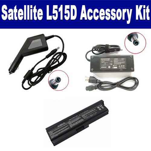 Toshiba Satellite L515D Laptop Accessory Kit includes the following items: 1) SDB-3354 Laptop Battery - Lithium-Ion - Ultra High Capacity Rechargeable (6 Cell - 4400 mAh - 49wh - 11.1 Volt) Replacement for Toshiba PA3818U Laptop Battery 2) SDA-3508 Laptop Adapter (19 Volt, 4.74 Amp, 90 Watt) 3) SDA-3558 Laptop DC Adapter / Car Charger (19 Volt, 4.74 Amp, 90 Watt)