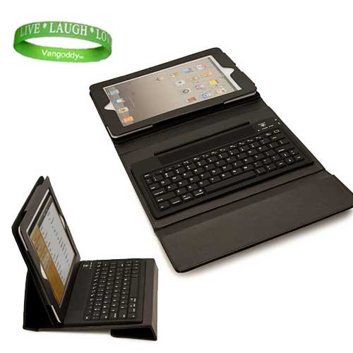 The Detailed Description of iPad Leather Cover with keyboard and Stand for Apple iPad 2 Tablet Computer + Compatible iPad 2 Earbud Earphones with Microphone + Precut iPad 2 Screen Protector + iPad Stylus + Vangoddy Live * Laugh * Love silicone Wrist Band!!!Features