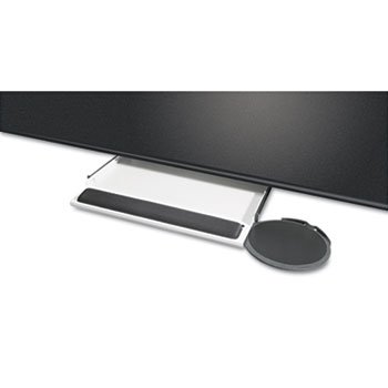 Kelly Computer Supply Underdesk Keyboard Tray with Oval Mouse Platform. Color: Black; Capacity (Weight): N/A; Workstation Type: N/A; Height (+/- Desktop): N/A.